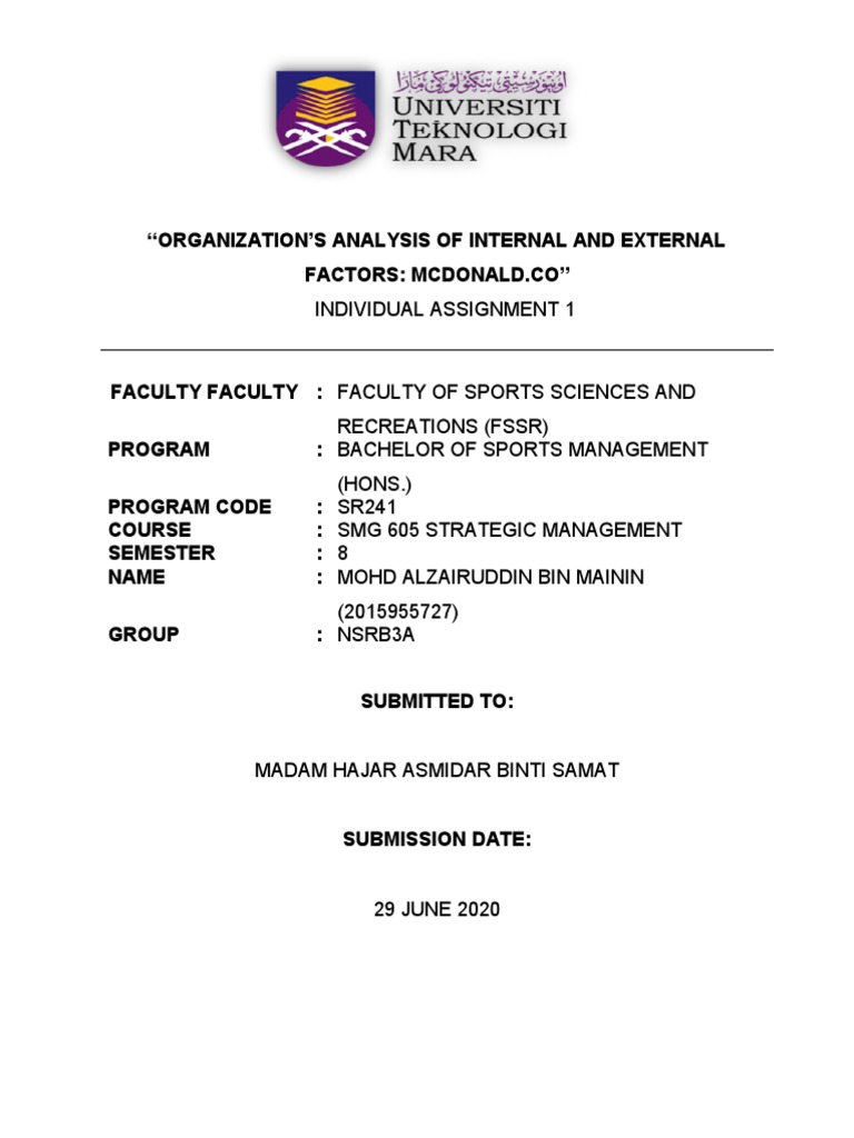 Smg605 Individual Assignment 1 Pdf Fast Food Restaurants Mc Donald S